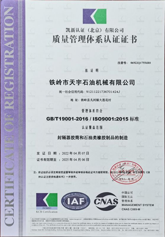 • 您好,歡迎來到鐵嶺市天宇石油機(jī)械有限公司(鐵嶺市鐵南橡膠制品廠)!